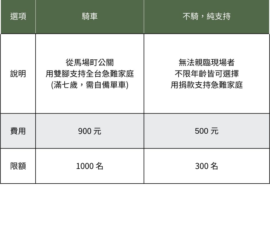 5.本活動為公益性質活動,故未提供完騎證書與參加證明。