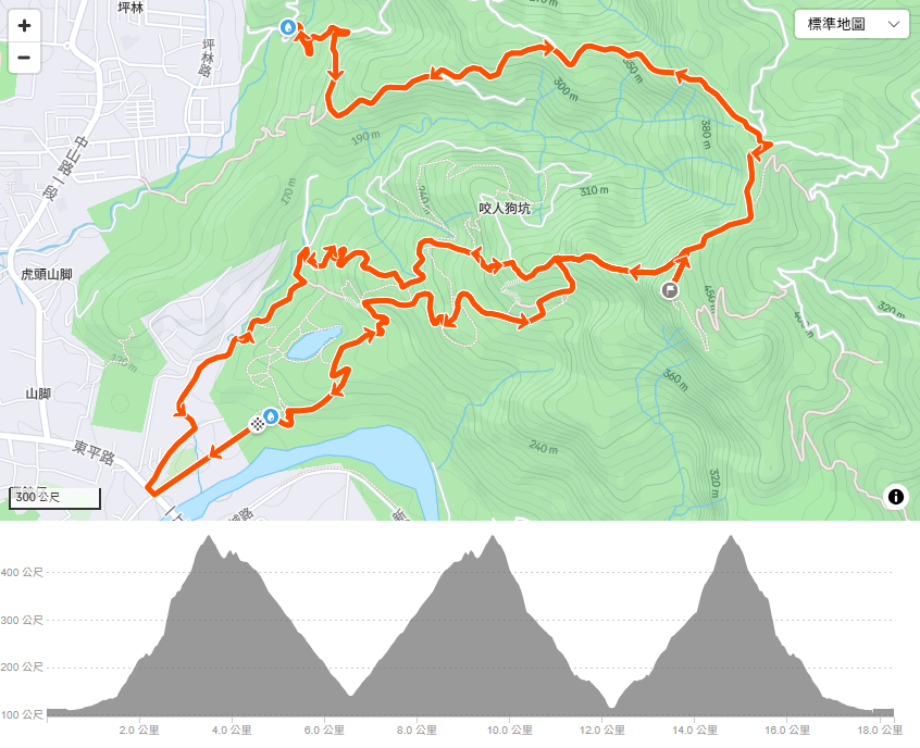 三進三汀山 里程:18.32 公里 爬升:1,122 公尺 此路線由咬人狗斜道提供 |