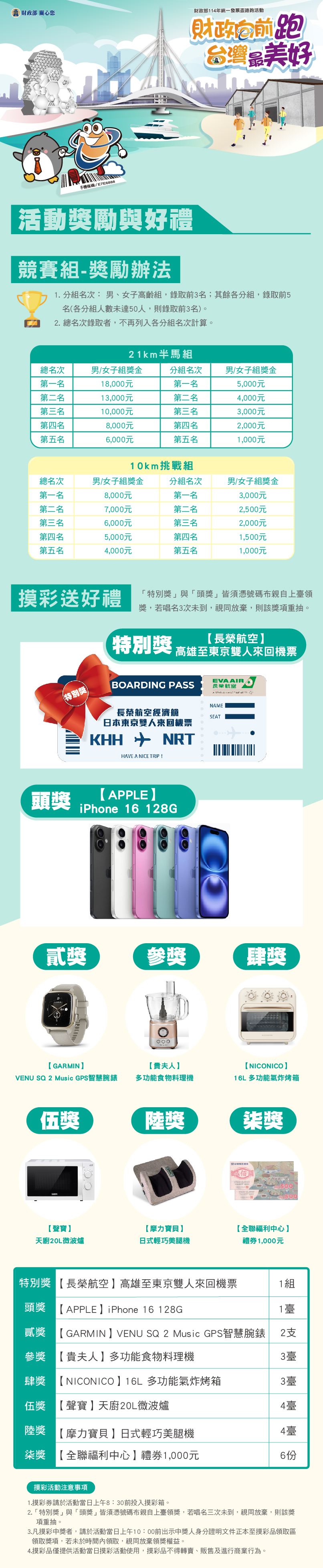 財政部114年統一發票盃路跑活動 半馬組(21km)與挑戰組(10km)