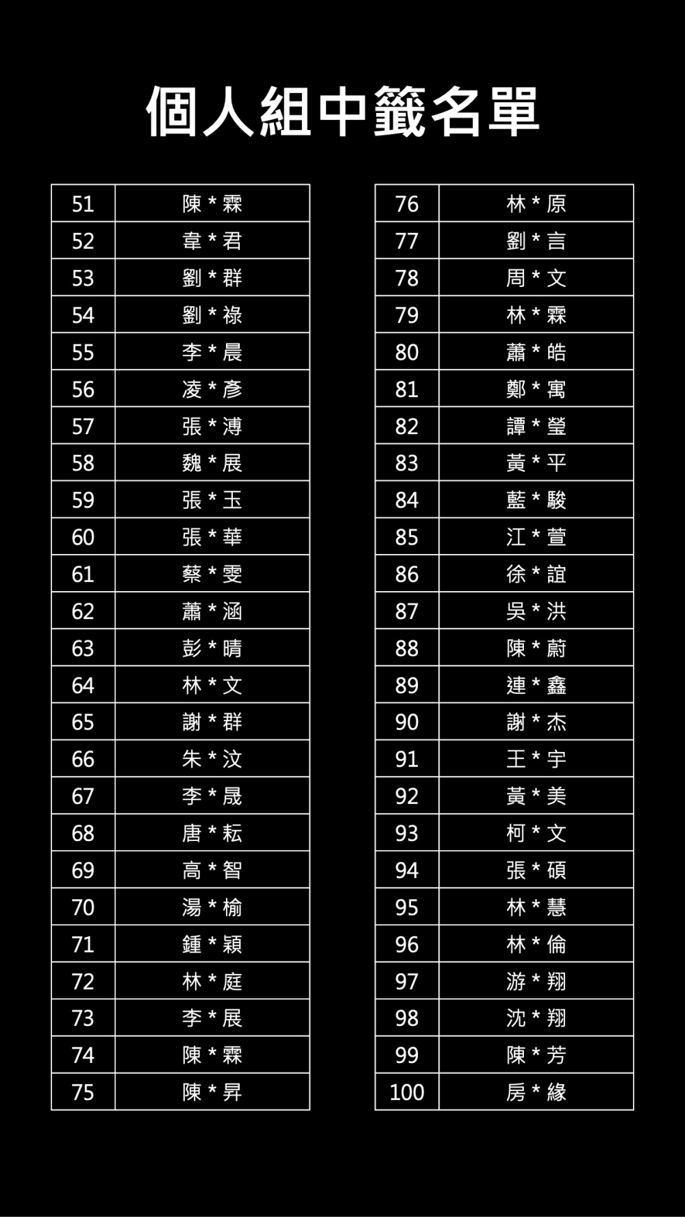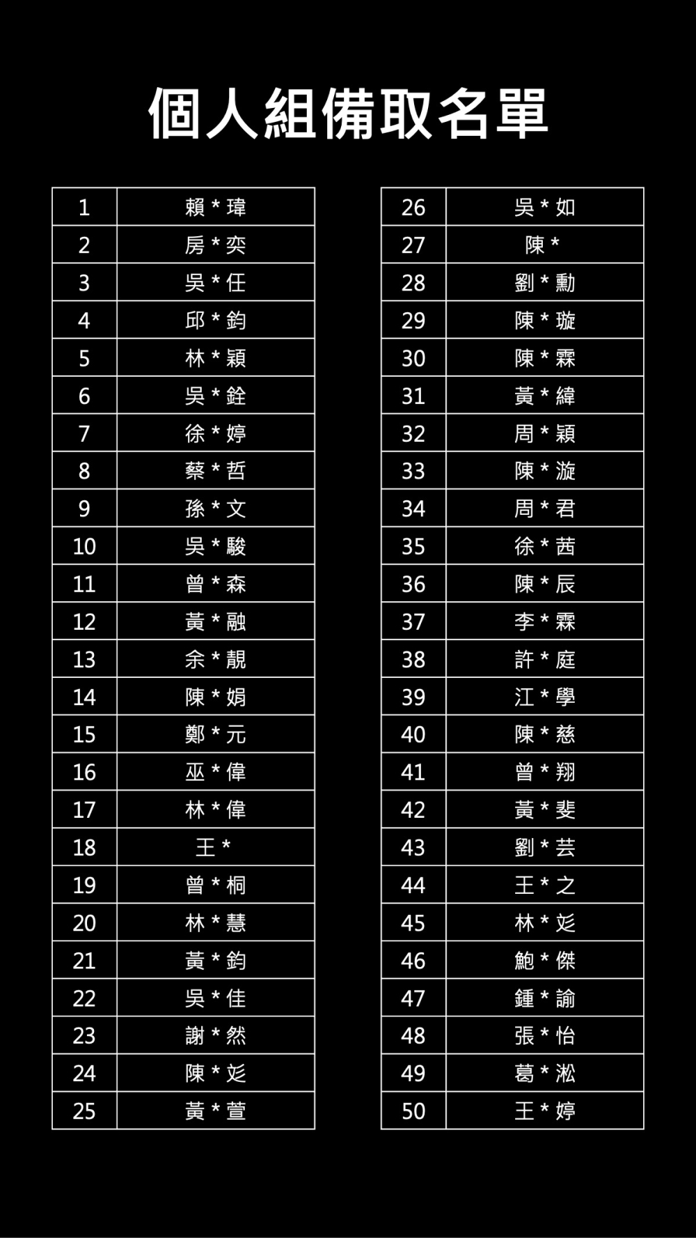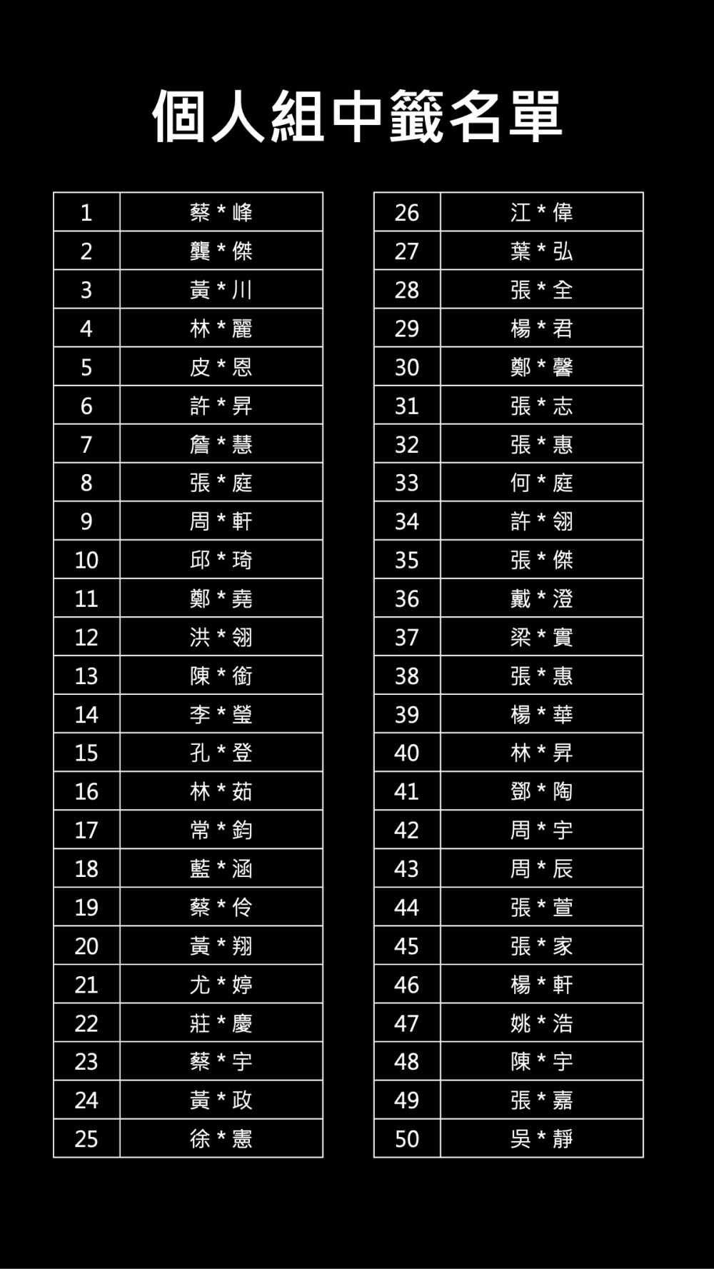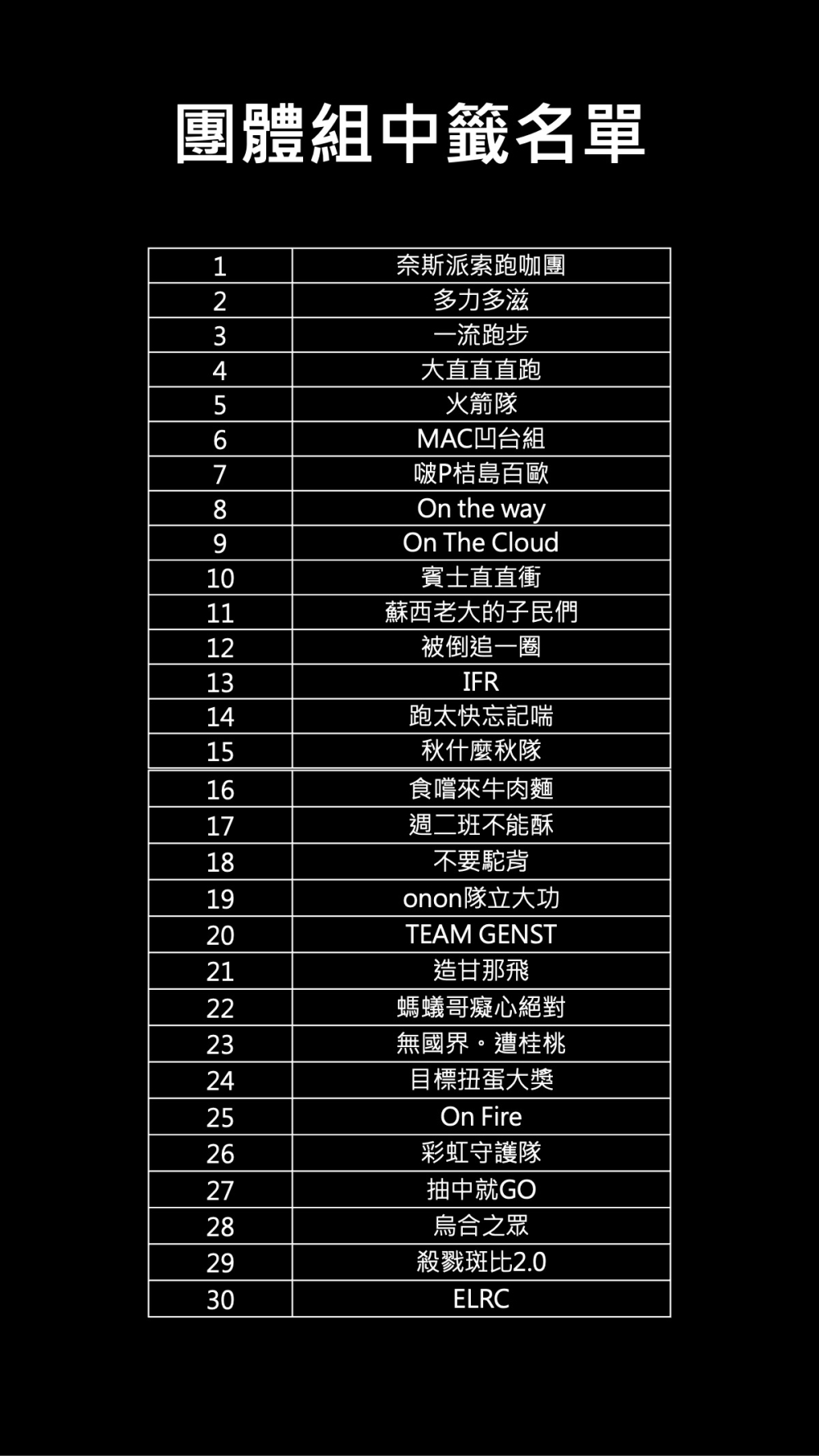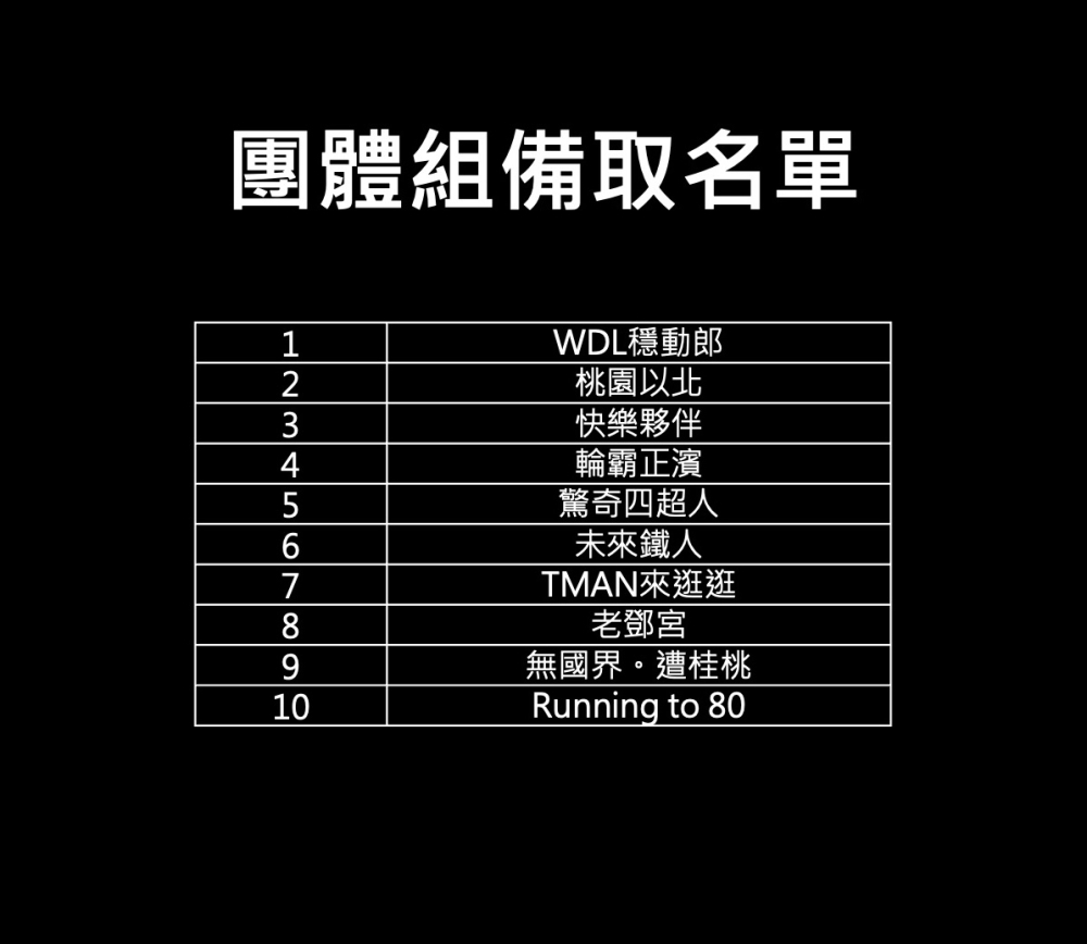 團體組以及個人組中籤名單請見下圖。