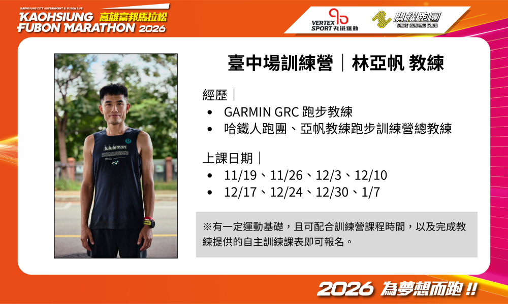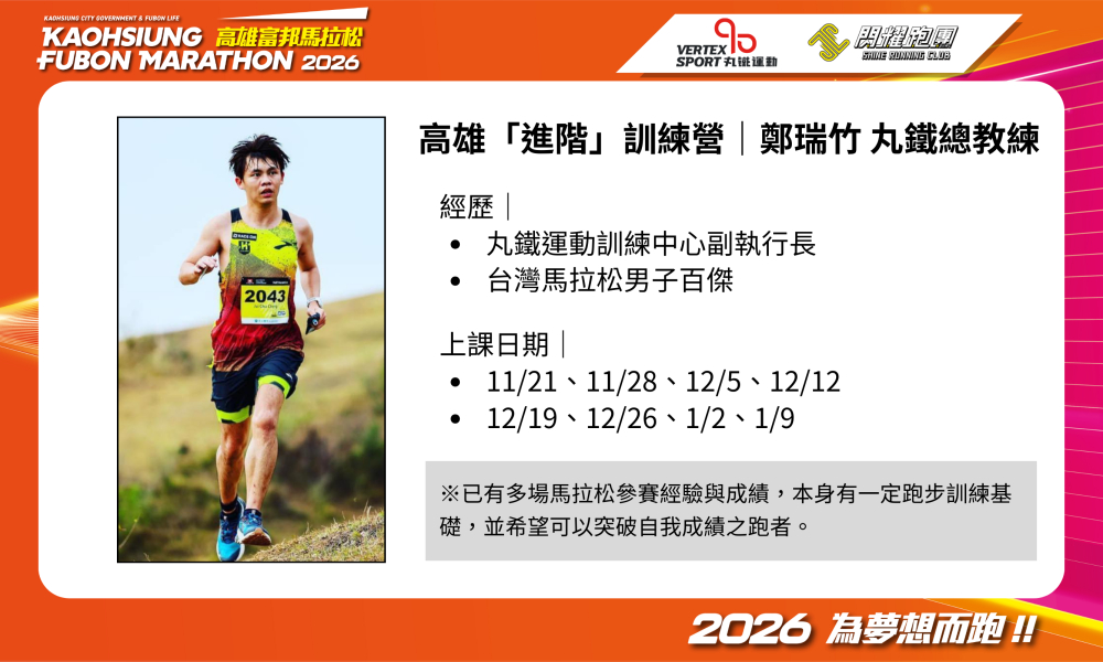 2026 高雄富邦馬拉松 丸鐵x閃耀 聯合跑步訓練營