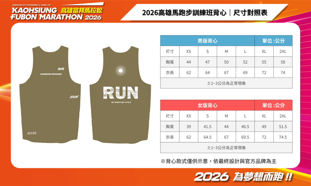 6. 比賽前如遇颱風、疫病或其他不可抗力之因素,停賽機制依照《2026高雄富邦馬拉松》報名簡章辦理。