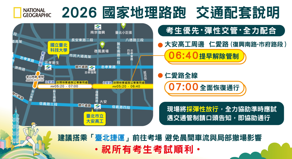 針對「2026國家地理路跑」與「統測」同日舉行之交通與應變配套說明2026-04-22