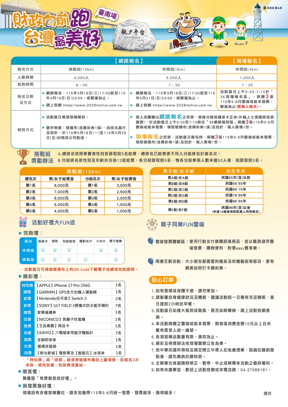 財政部115年統一發票盃路跑活動(臺南場)-挑戰組(10km)