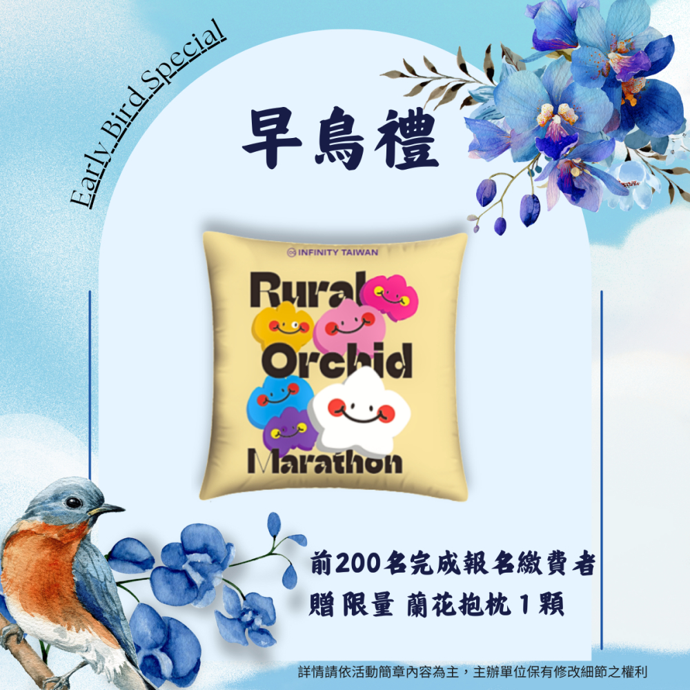 完 賽 禮 | ●蘭花植株 ●完賽獎牌 ●給自己未來一封信 - 明信片 ●電子完賽證書 | ||||