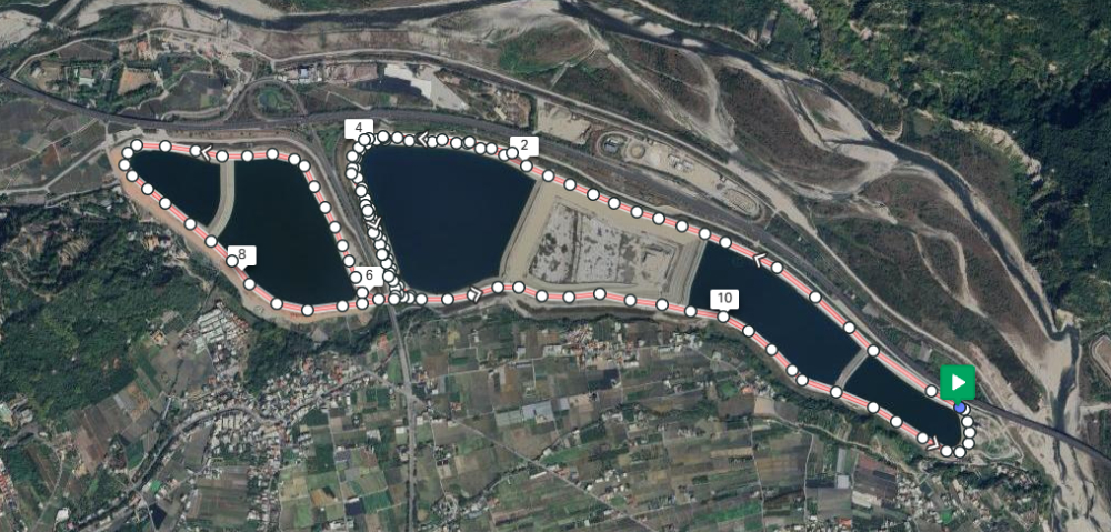 - 健跑組10公里逆時針環A、B、C、D、E、F區1圈及聯外道路,使用車道,路寬6米。