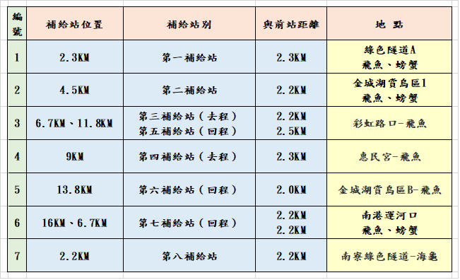 (四)補給:補給站物資請適量使用(水果品項以當令為準),終點提供餐點。