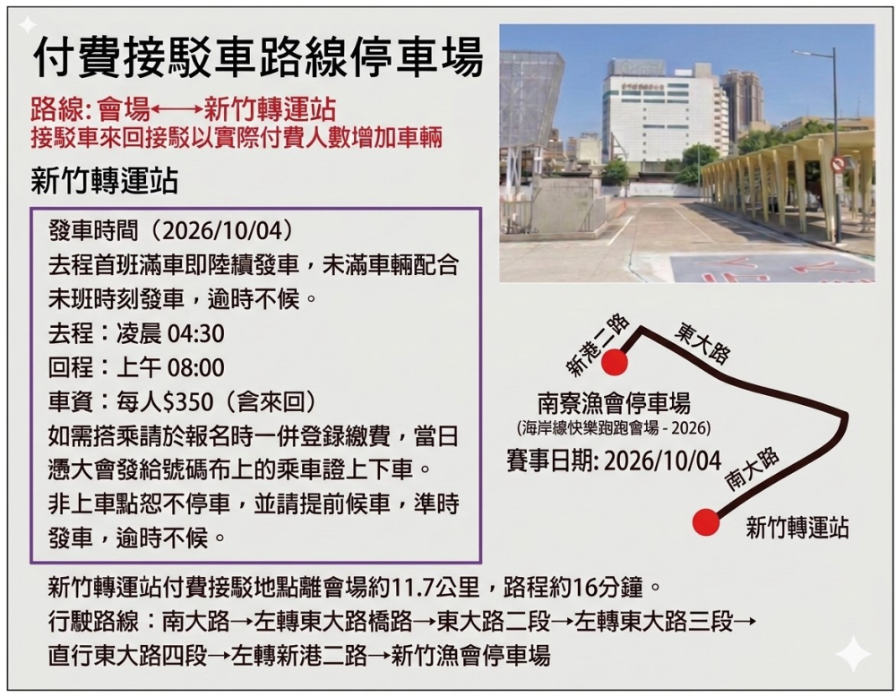 中華民國陸上運動競技協會邀請您秋季一起來感受新竹市南寮十七公里海岸線的無敵海景,2026新竹市「戀戀海岸線」快樂路跑,竭誠歡迎各界熱烈參與!