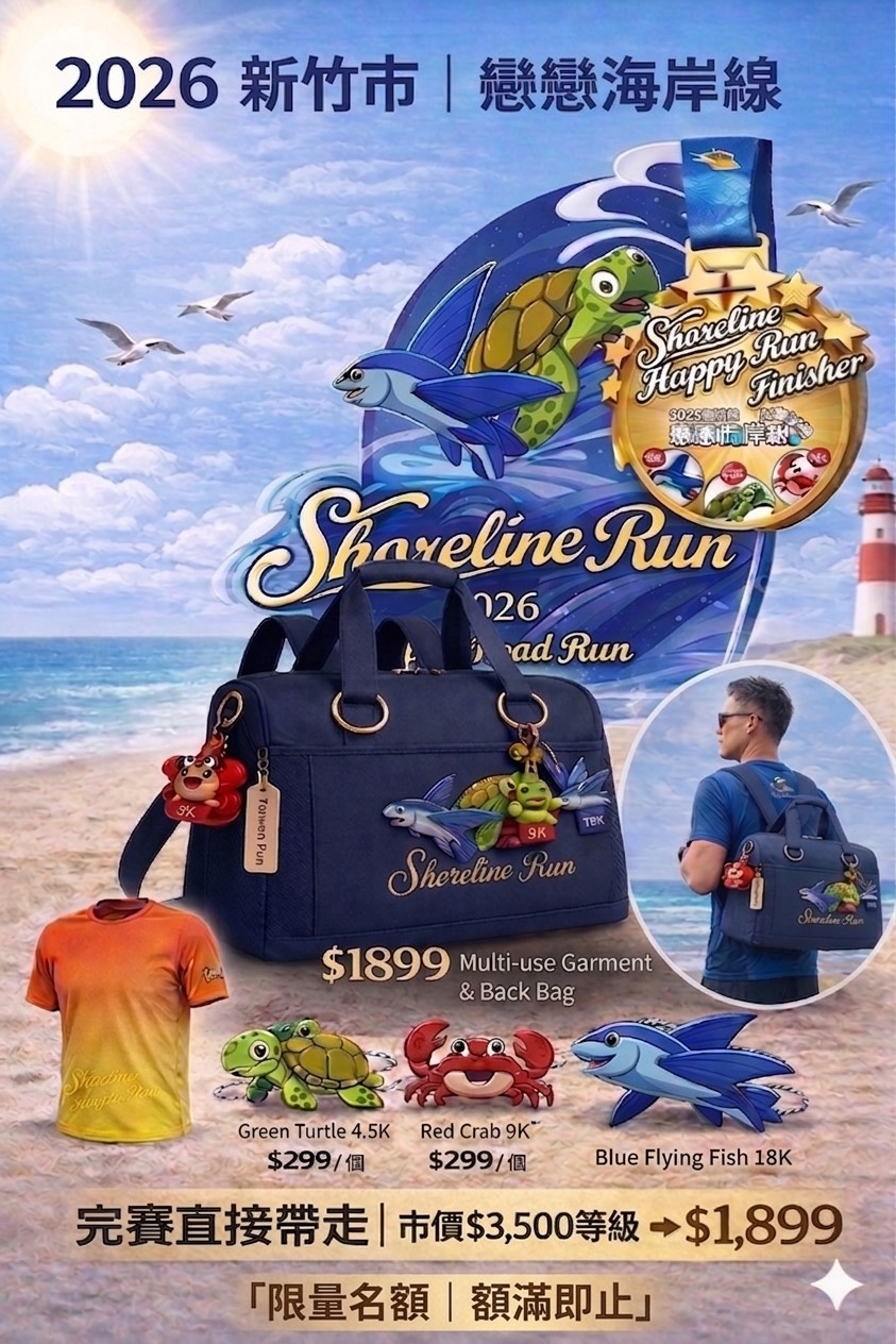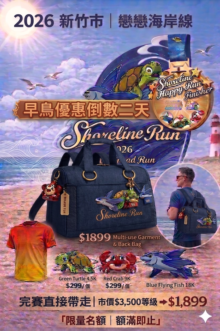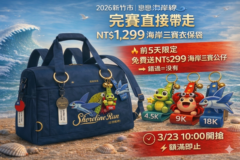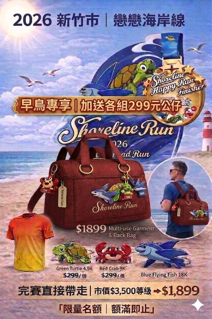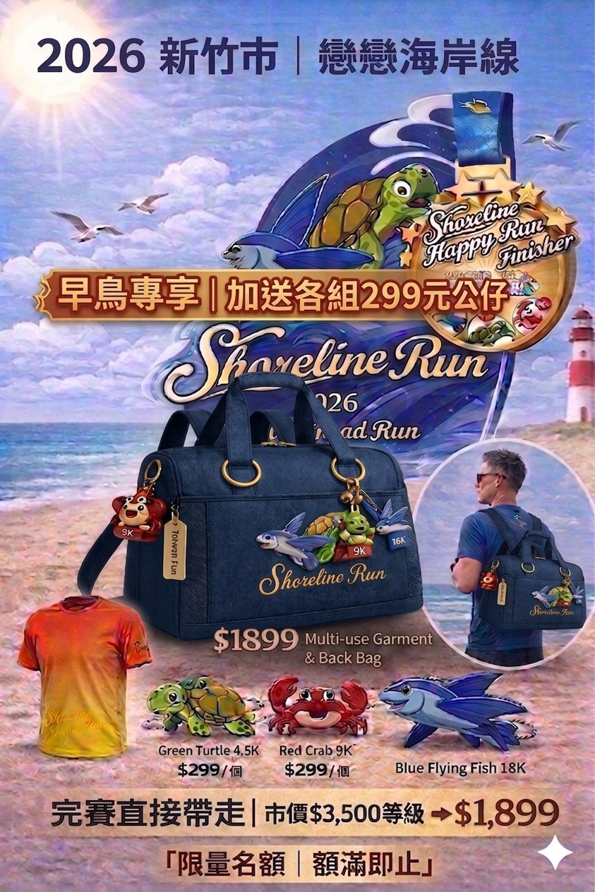 🎁 完賽直接帶走 $1299 海岸三寶賽事衣保袋🔥 前5天再加碼 $299 限量三寶公仔(送完就沒)