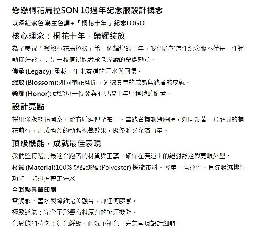 賽事專屬紀念衫示意圖,超值加購每件特惠價499元