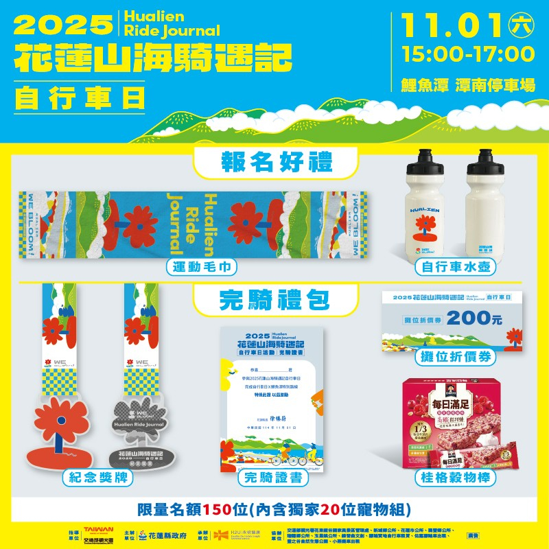 完騎再送:超豐富完騎禮包(完騎證書、花蓮小石花獎牌🏅、200元攤位折扣券、營養補給棒)