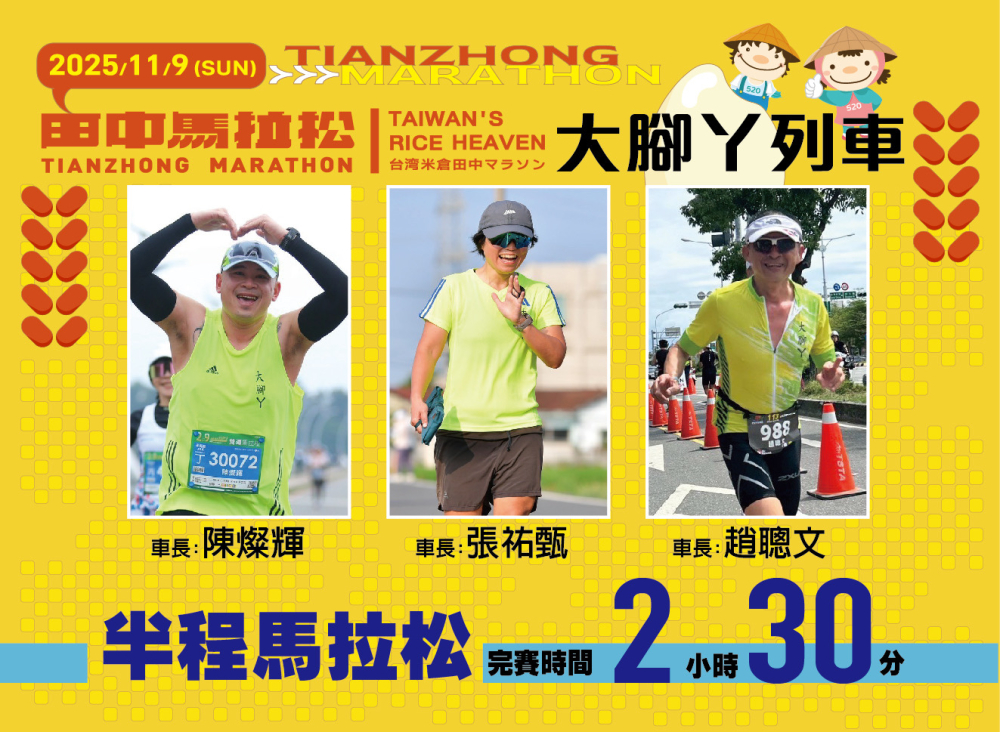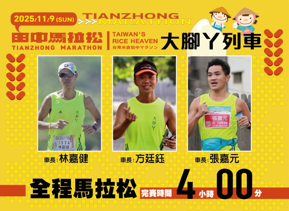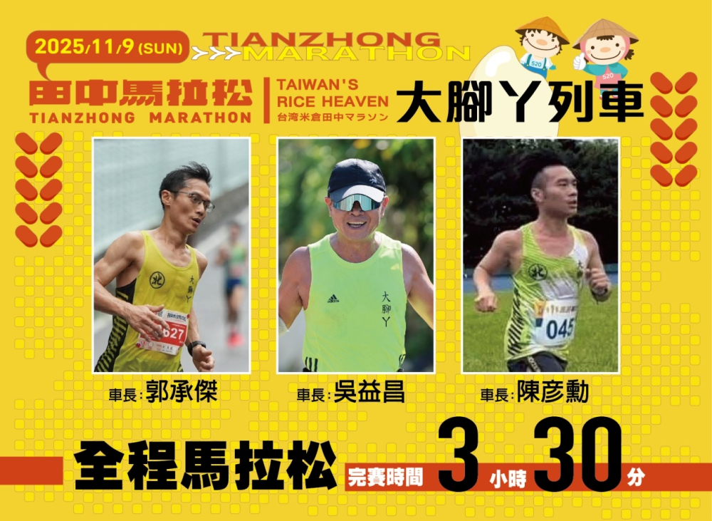 田中馬x大腳ㄚ配速團隊 PACER一覽圖 上車囉!2025-11-02