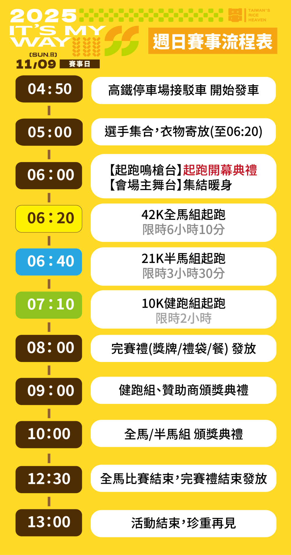 ■接駁時間:賽事日週日04:50~07:10、09:00~13:30,最後一班次13:30從會場準時出發。