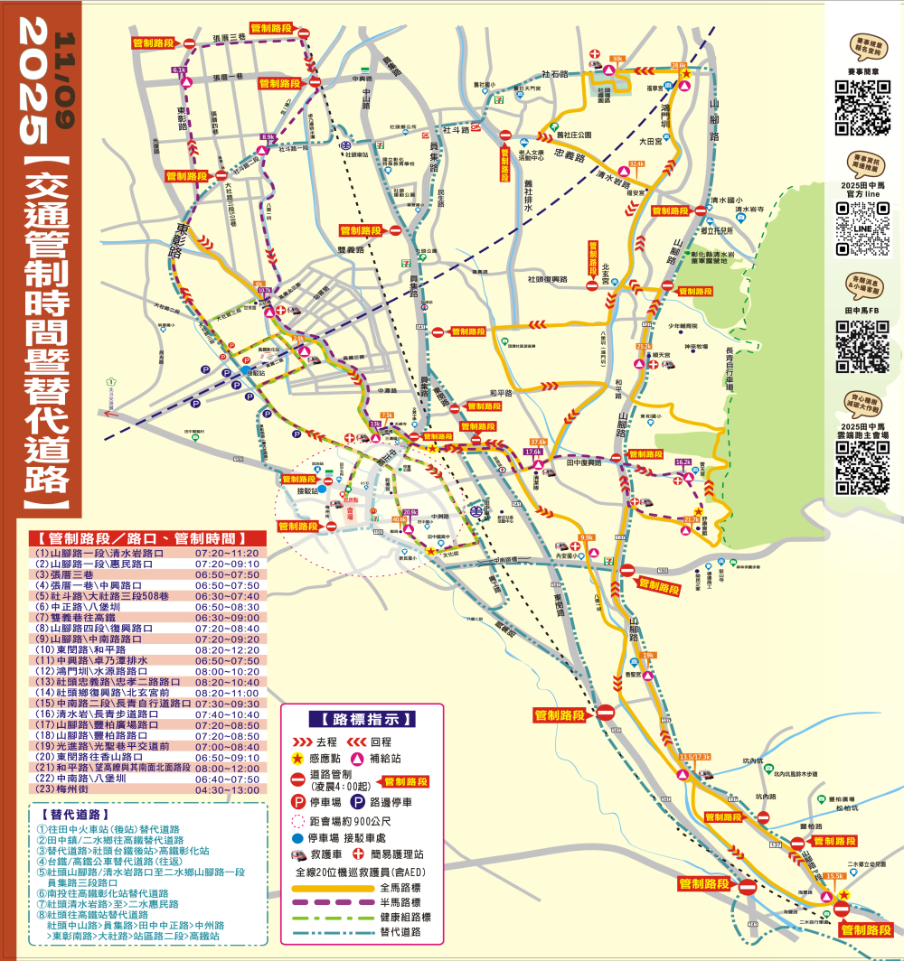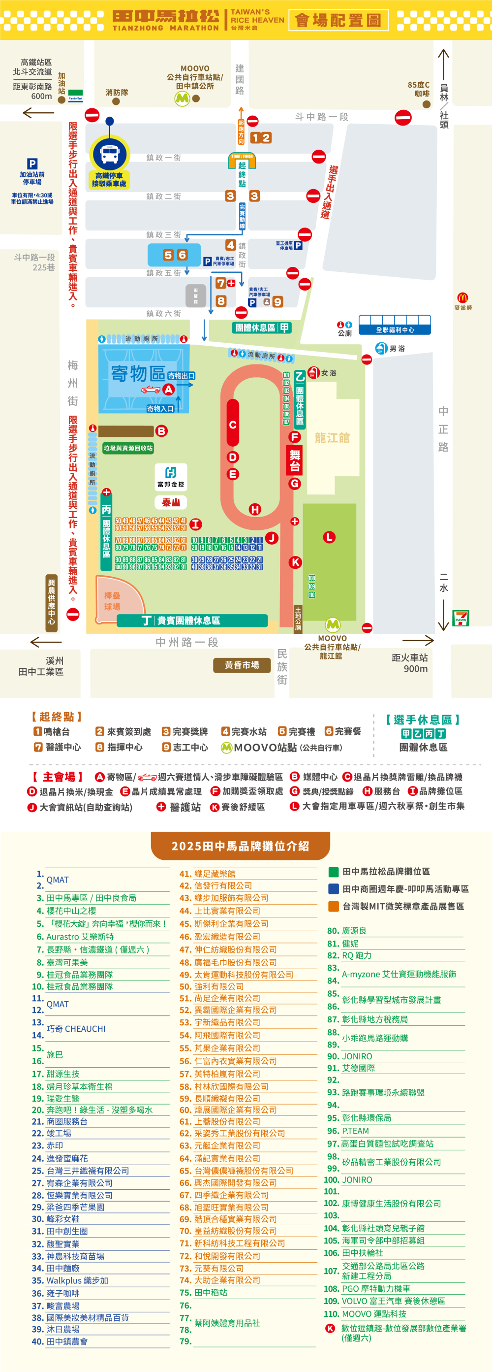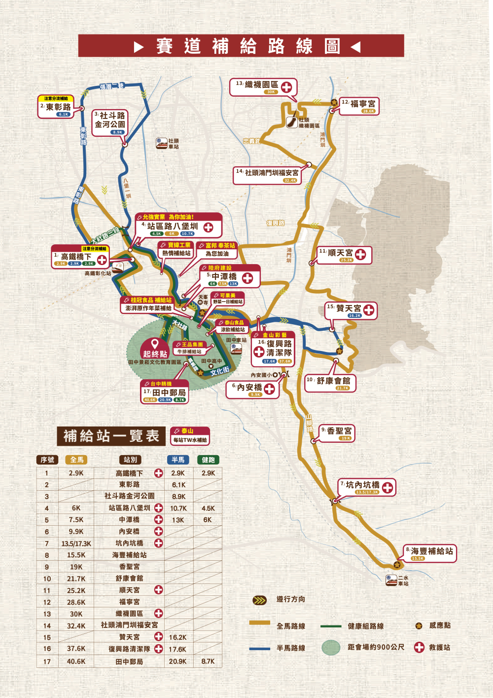特別感謝鄉親與品牌方的加油補給,此圖提供官方補給站站點,與部分品牌方補給加油站,更多鄉親品牌團體補給加油站歡迎各位選手蒞臨田中。