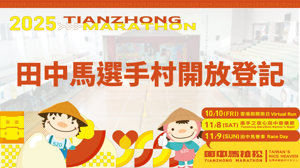 田中馬選手村2025年8/1 中午12:00開始於線上登記,歡迎跑友前一天就能蒞臨參與熱鬧選手之夜-旅田中定點導覽、2025米寶親子路跑、520心田中音樂節等活動,感受全鎮熱情活力,體驗小鎮風采!登記於10/17截止或額滿為止。