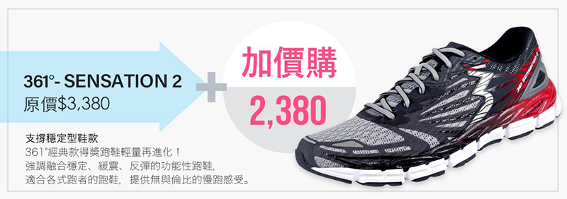 361°經典款得獎跑鞋輕量再進化! 強調融合穩定、緩震、反彈的功能性跑鞋,適合各式跑者的跑鞋,提供無與倫比的慢跑感受。