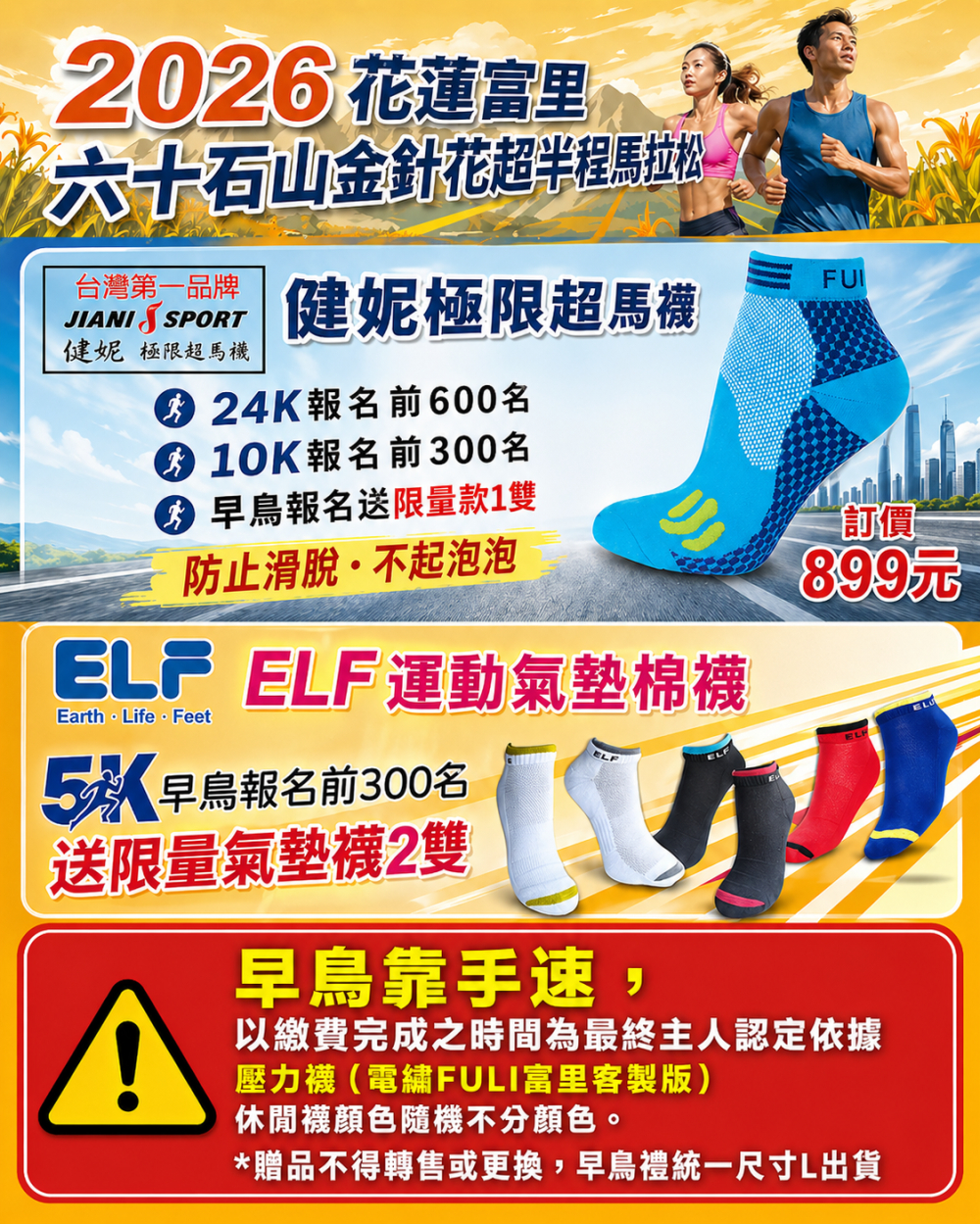因此,第二屆的 「2026 花蓮富里六十石山金針花超半程馬拉松挑戰賽」,將在首屆良好口碑的基礎上再出發。我們希望延續這份感動,讓更多跑者在金針花盛開的季節,用雙腳認識富里、感受富里,也把六十石山最美的一面,深深留在每一位參與者心中。