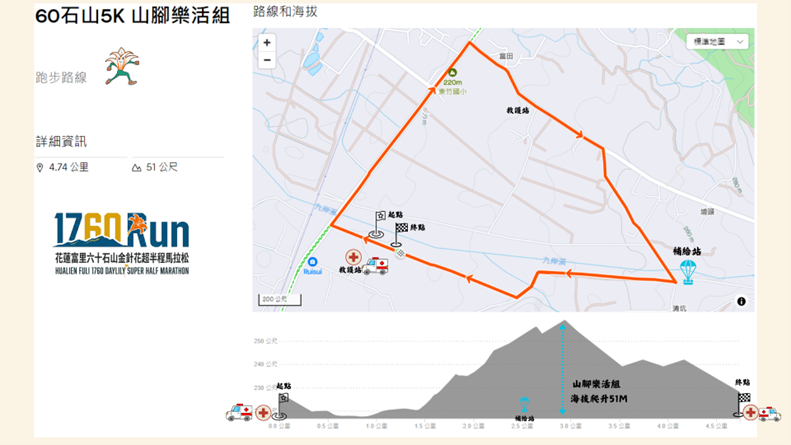 (3) 快樂響導 5K 山腳樂活組路線: 總長: 約5 KM 爬升 :51M