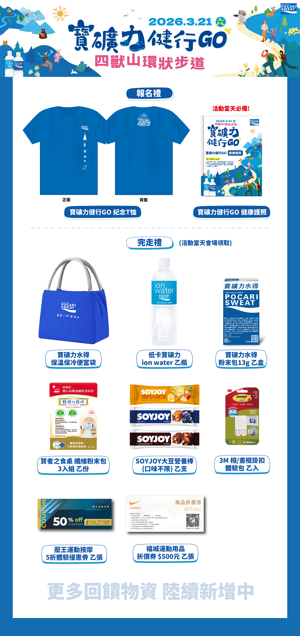 ■無法參加活動者:請於賽後上班時間2026/3/25-4/1(週一至週五 09:30-12:00;13:30-18:00)至承辦單位(新北市中和區連城路258號13樓)領取,逾期視同放棄領取,物資將歸承辨單位所有。