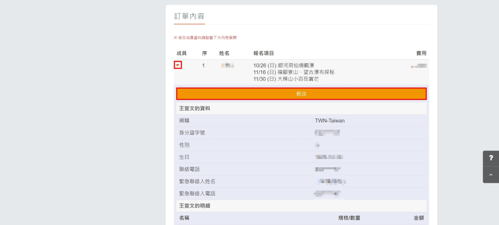 進入修改訂單頁面,